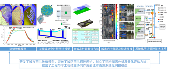 該科研成果結合新時期國家城鎮內澇防治重大需求,瞄準內澇風險模擬評估與雨洪調控技術領域關鍵科學問題,通過研究攻關,結合西咸新區灃西新城、寧夏固原和甘肅慶陽等國家海綿城市試點城市建設實踐,研發城市雨洪過程高效高精度數值模型,較好解決了復雜降雨過程、復雜下墊面、復雜排水系統條件下的城市雨洪模擬計算精度效率不高的問題,突破城區雨洪調控理論,創立積澇溯源分析及量化評估方法,提出了“灰綠耦合”工程與非工程措施協同作用的城市雨洪系統化調控模式。最終形成了一套具有完全自主知識產權的城市雨洪過程高效高分辨數值模型模擬與調控關鍵技術,可為城市排水防澇規劃、工程設計、內澇風險評估及防災減災預警預報提供有力支撐,成果整體達到國際先進水平。