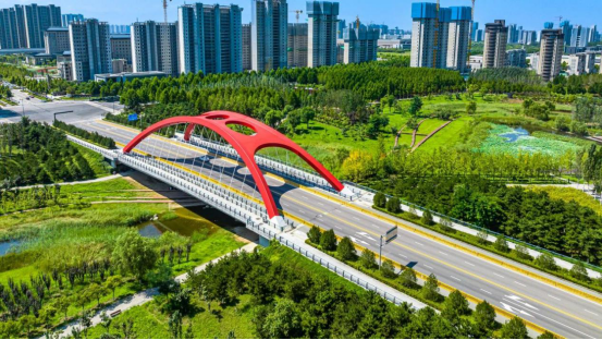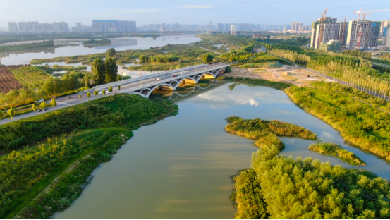 2015年灃西新城正式成為全國首批海綿城市建設試點。在海綿城市建設中,灃西新城提出了“建筑地塊確保雨水應收盡收、市政道路加強集水功能、景觀綠地優化豎向設計、中央雨洪系統形成調蓄樞紐、河道修復增加天然水域”等七大試點做法,對雨水進行“滲、滯、蓄、凈、用、排”多種方式處理,已初步構建了建筑小區、城市道路、公園綠地、河流濕地四個層級的海綿城市建設體系,逐步修復了轄區內的河湖水系。