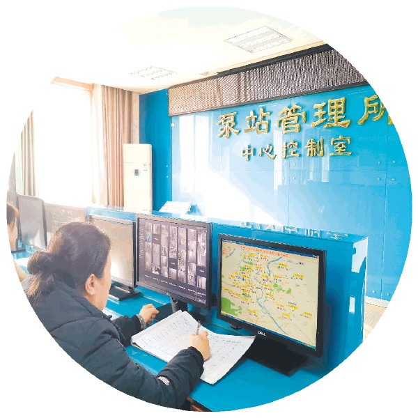上海路泵站中控室內(nèi),工作人員正在值班。