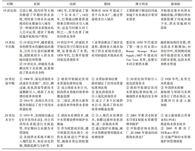 引言 在中世紀的歐洲,清潔的水源極為稀缺,導致人們常常以酒代水來應對飲水需求。隨著時間的推移,一些創新的水處理裝置開始出現,例如意大利人發明的砂濾裝置,逐漸緩解了水質問題。與之相比,我國在同一時期的供水系統則主要依賴于井水和河水,隋唐時期還通過大規模水利工程滿足城市和農業用水需求,展現了早期水資源管理的智慧。進入近代,歐洲的現代供水系統迅速發展,尤其是19世紀中期的供水網絡建設,奠定了現代城市供水的基礎。與此同時,我國在19世紀末才開始引入現代供水系統,新中國成立后加大基礎設施建設投入,改革開放后則進入快速發展階段。隨著我國經濟的增長和人民生活水平的提高,社會對飲用水質量的要求日益提升。特別是在經濟發達的大城市,實現高品質自來水已經成為城市供水系統的重要目標。然而,盡管我國供水系統取得了長足進步,但在供水管理、技術創新和水質監測等方面,與發達國家相比仍有一定差距,各個方面還需要借鑒國外先進國家的經驗。因此,本文通過對發達國家供水系統建設和管理的對比分析,為我國建設高品質自來水提供借鑒和參考。