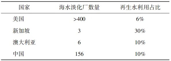 此外,新加坡采用海水淡化和再生水技術減輕單一水源對管網的污染壓力的方法也值得借鑒,而不同國家和地區在海水淡化和再生水利用方面存在顯著差異(表6),美國擁有超過400座海水淡化廠,盡管再生水占比僅為6%,但其海水淡化能力領先全球。新加坡再生水占比高達30%,盡管其僅有3座海水淡化廠。這一高比例再生水利用表明,新加坡在水資源管理和技術創新方面取得了顯著成效。澳大利亞和我國在再生水利用方面表現出較高的重視度,兩國再生水占比均為10%。澳大利亞擁有6座海水淡化廠,而我國的海水淡化廠現有海水淡化工程156個(截至2023年底),其中萬t級及以上海水淡化工程共55個,千t級及以上、萬t級以下海水淡化工程共51個。