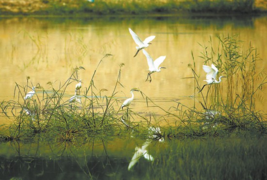 劉立國是一名攝影愛好者,總是將鏡頭對準(zhǔn)家鄉(xiāng)的河。以前,泃河多半年斷流,水少的季節(jié),鳥也不愛來,隻能拍攝河邊的花草和建筑。前幾年河裡有了水,泃、洳兩河交匯處常有鳥友蹲守,有從城裡來的,也有從周邊來的,他就曾目睹上百隻白鷺傍晚翔集。
