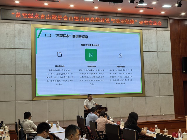 今年是綠水青山就是金山銀山理念提出20周年。近日,由西南政法大學(xué)、生態(tài)環(huán)境部環(huán)境與經(jīng)濟政策研究中心主辦的“落實綠水青山就是金山銀山理念的政策與法治保障”研究交流會在重慶市舉行。會上,廣東省東莞市生態(tài)環(huán)境局黨組成員、副局長王鑫以《小切口、小快靈:東莞市零散工業(yè)廢水管理的立法創(chuàng)新》為題作主題發(fā)言,向與會專家學(xué)者分享東莞市零散工業(yè)廢水管理的法治經(jīng)驗。