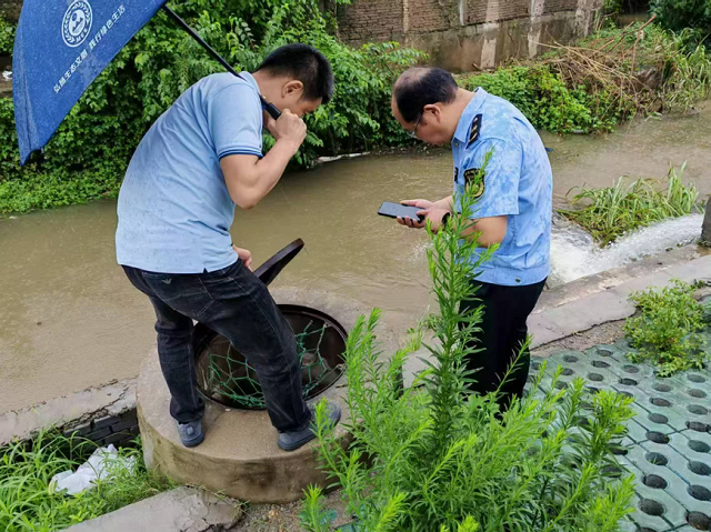 “洪水過后的隱患排查必須萬無一失!”執(zhí)法隊員黃原在某鄉(xiāng)鎮(zhèn)污水處理廠排查時,敏銳發(fā)現(xiàn)雨水排水口被堵塞,他立即要求企業(yè)整改。